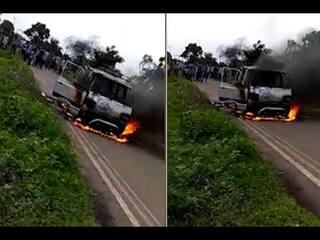 બાયડના દેરોલી પાસે બાળકો ભરેલી સ્કૂલવાનમાં અચાનક લાગી આગ, મચી અફરા-તફરી, જુઓ વીડિયો