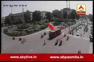સુરતઃ શહેના એકે રોડ પર બીઆરટીએસ બસે બાઈક ચાલકને ઉડાળ્યો હતો. જોકે, સદનસીબે યુવક બચી ગયો ગયો હતો. બીજી તરફ રોષે ભરાયેલ લોકોએ બસ ચાલકને માર માર્યો હતો. આ સંપૂર્ણ ઘટનાના સીસીટીવી સામે આવ્યા છે.