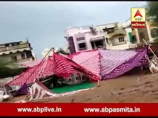 ગાંધીનગરમાં ભારે પવન સાથે વરસાદ પડતા પંડાલ ધરાશાયી, જુઓ વીડિયો