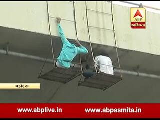 વડોદરાઃ બ્રિજ નીચે લટકીને કારીગર જીવના જોખમે કરી રહ્યા છે કામ, જુઓ વીડિયો